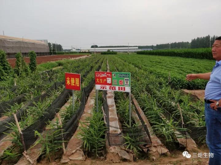 大姜地使用三炬微生物菌劑產(chǎn)品后,抗重茬,降低土傳病害,對(duì)線蟲(chóng)起到一定的抑制作用,生根發(fā)芽快,防死棵爛苗,苗齊苗壯,提高大姜品質(zhì)和產(chǎn)量,生根促根護(hù)根效果明顯,具有解磷解鉀的作用,提高大姜對(duì)營(yíng)養(yǎng)元素的吸收利用率,豐產(chǎn)豐收,連年使用可有效改善土壤環(huán)境質(zhì)量,大姜抗病增產(chǎn)效果明顯,對(duì)爛脖子、姜瘟等效果顯著。